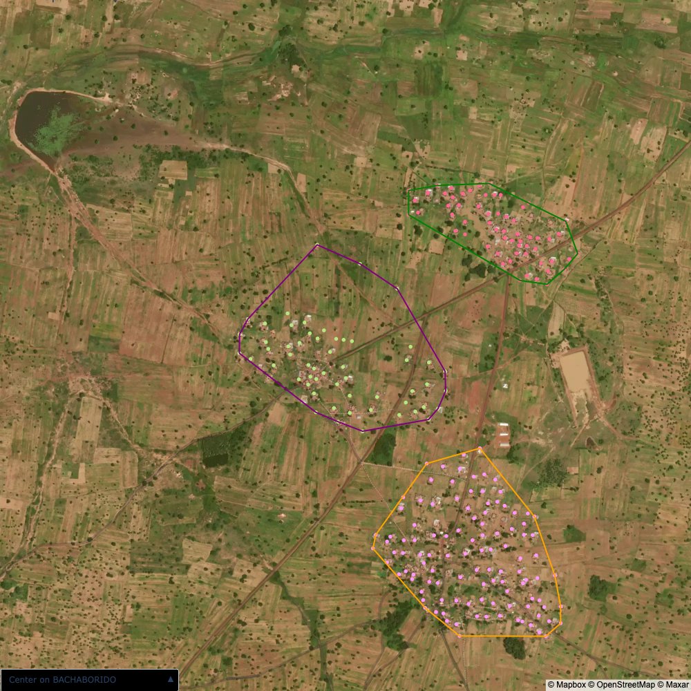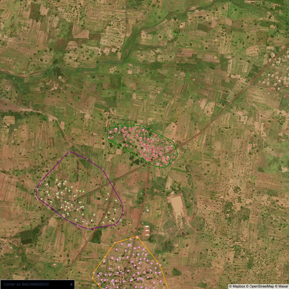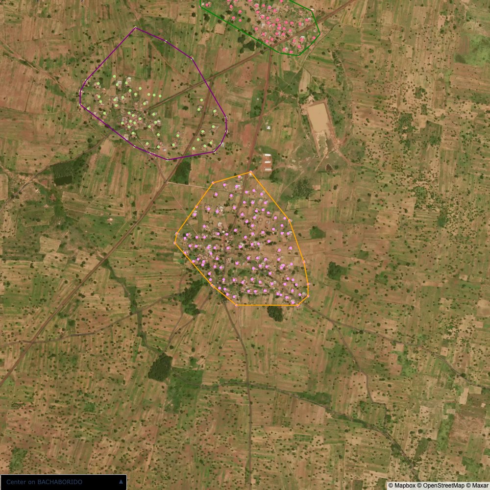 The one (loose) exception is KPALSOGU; however this is because there are two communities with the same name. To solve this problem, I used a simple K-Means algorithm to cluster the points into the two different communities. In the actual data, we would be able to tell them apart by district (the raw GPS data doesn’t have district data causing the confusion)