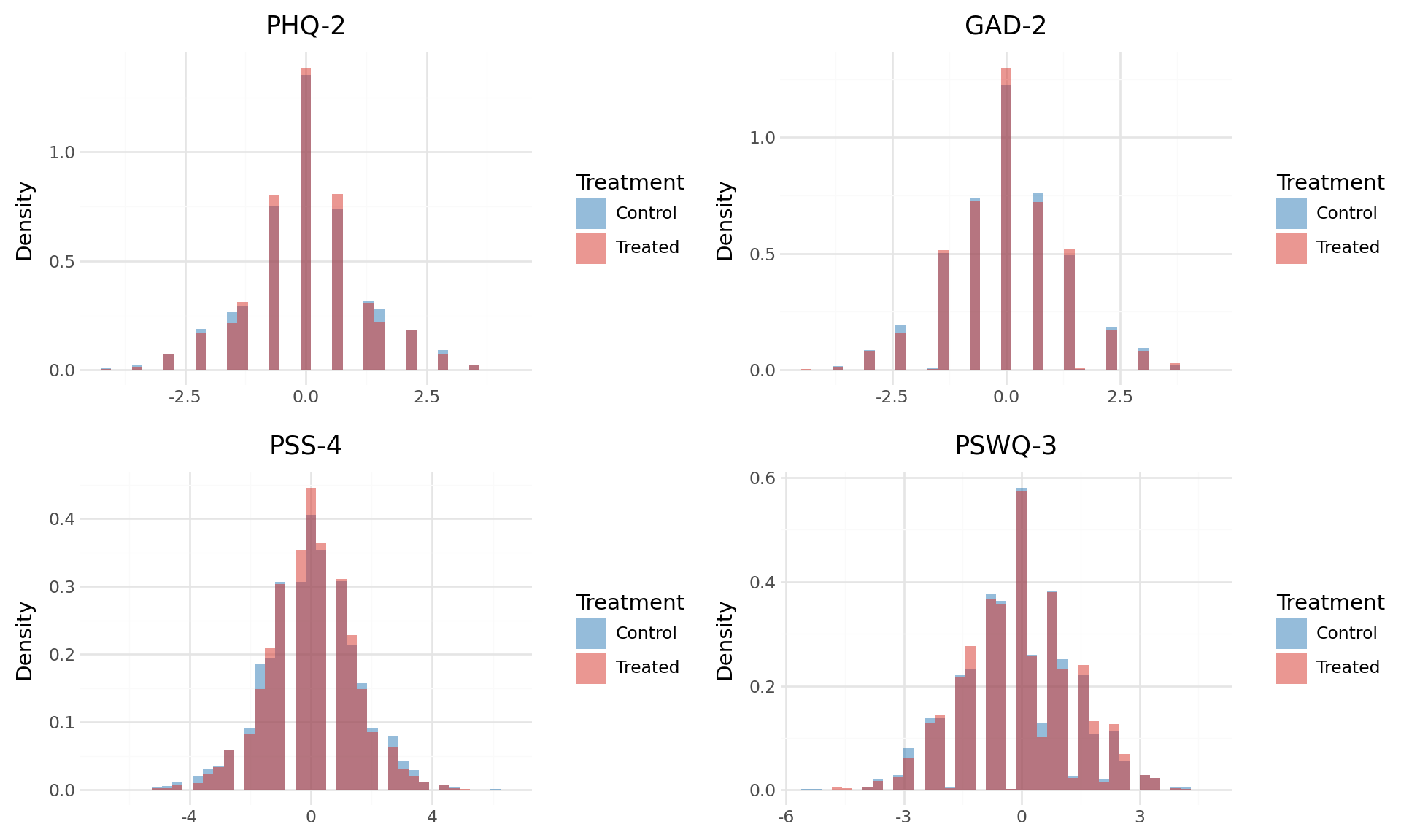 / (make_changes_distribution_by_treatment('pss4_z_diff', 'PSS-4')